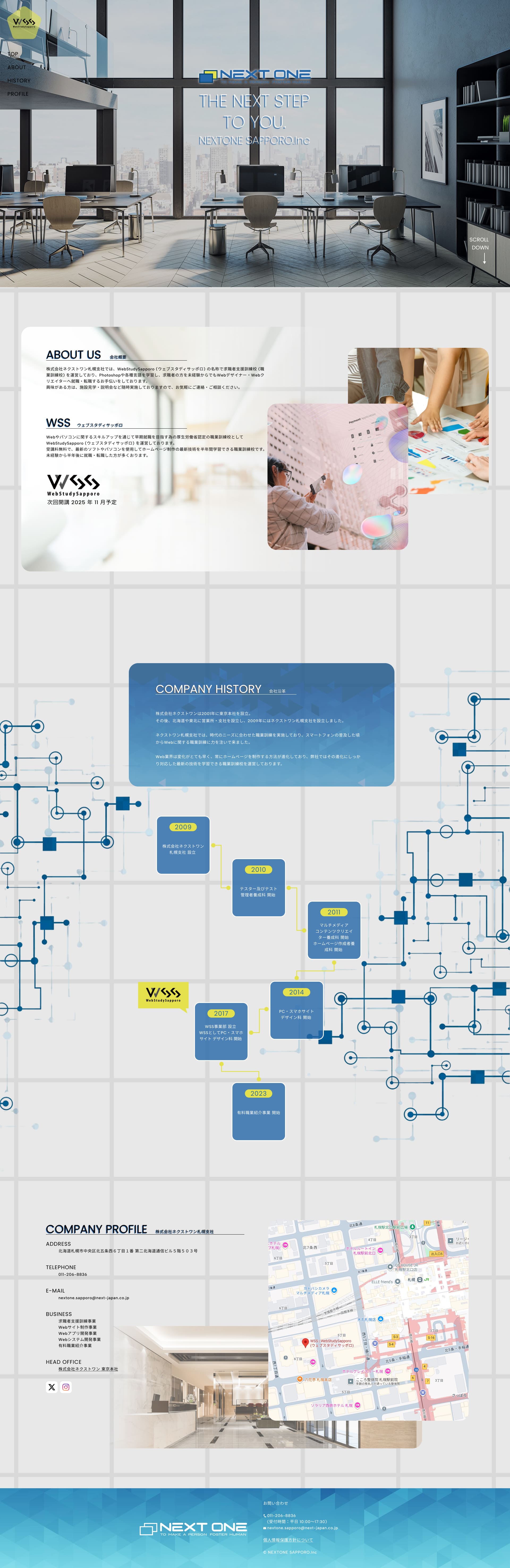 全体的に幾何学模様を取り入れてIT企業の雰囲気を意識したデザインにしました。
